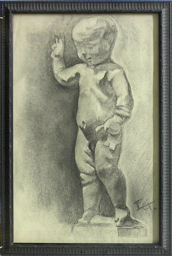 Charcoal drawing Statue Boy E G F
