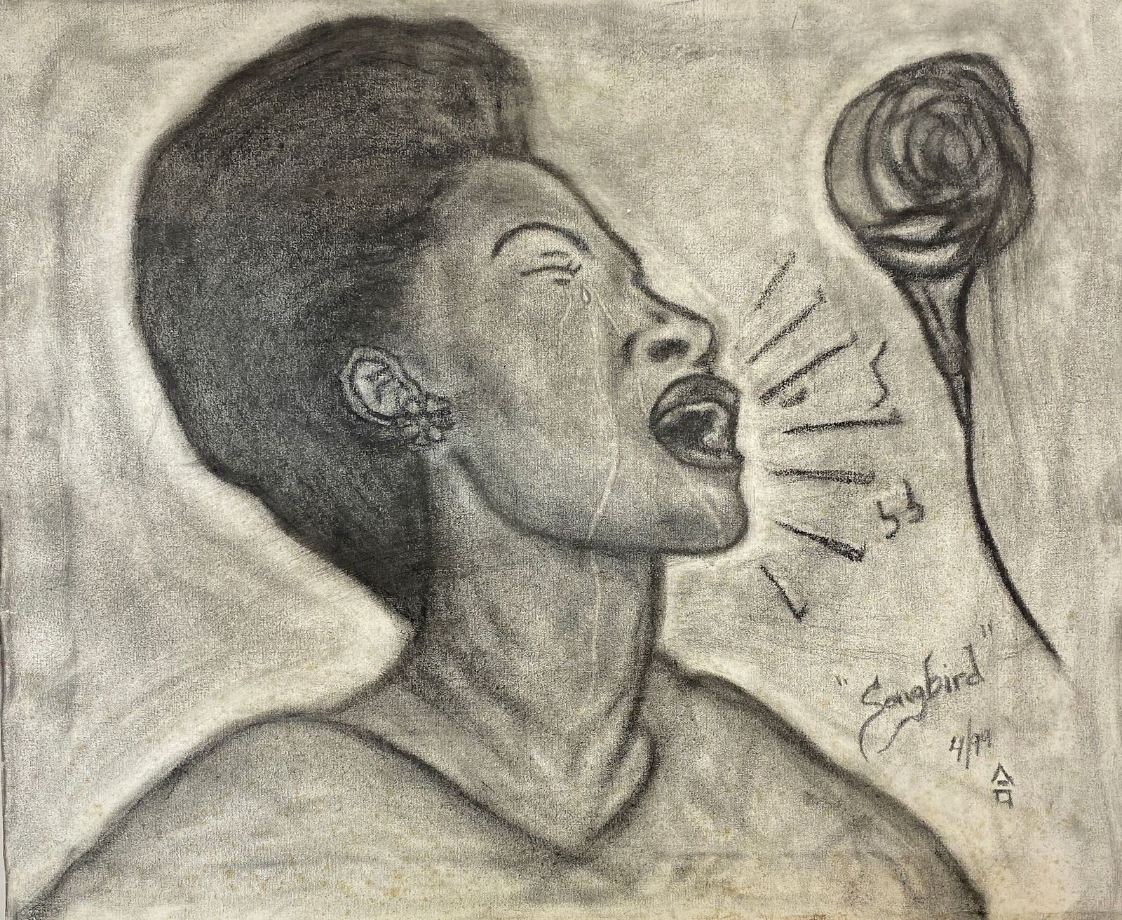 Charcoal on Canvas - Titled "Songbird", Signed and Dated
