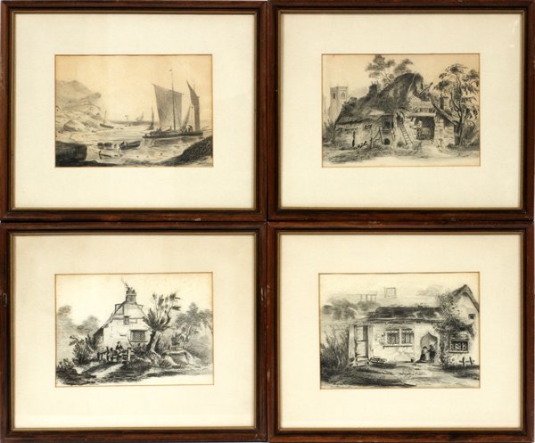 CHARCOAL PENCIL DRAWINGS 4 PCS.