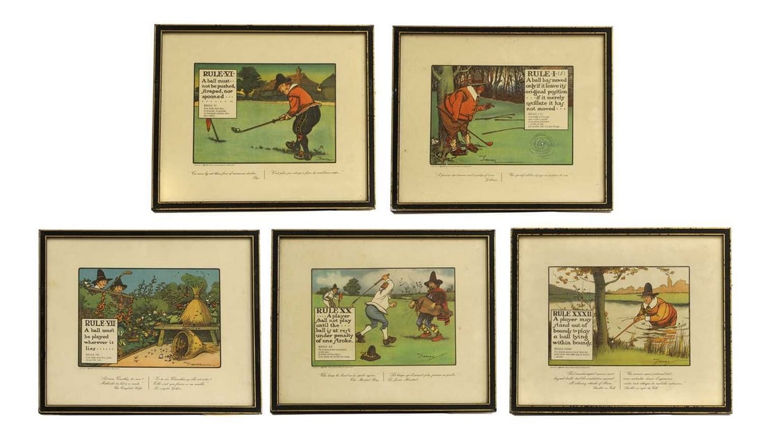 SoldCharles Crombie [24] Rules of Golf Rule PrintGroup of 24 Charles Crombie, 1966 Edition, Humorous Print Rules of Golf, London 1905. All have artist's name printed in plate. All have "Copyright of Perrier, French Natural Sparkling Table Water" priSee Sold Price