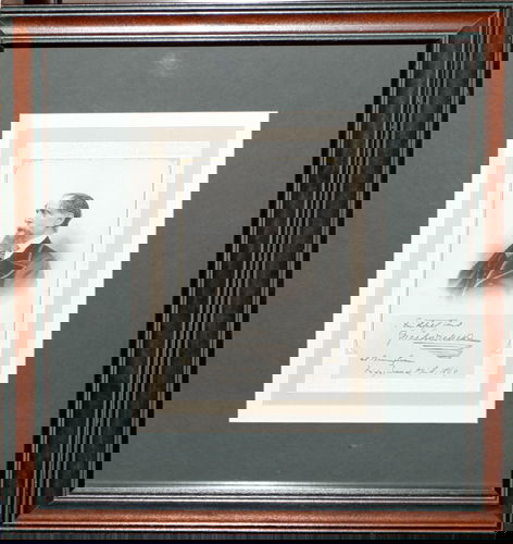 SoldCharles Dickens Signed Letter and portraitsA letter written by Charles Dickens dated 1852 is matted and framed along with two engravings of the author. The mat is yellowed and has a stain in the lower left. The frame is 17 1/2"h x 13 5/8"w. ToSee Sold Price