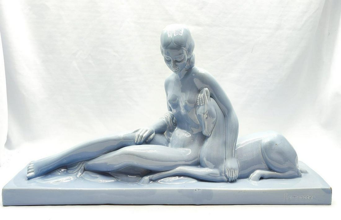 SoldCharles LEMANCEAU (1905-1980) a ceramic art deco statueCharles LEMANCEAU (1905-1980) a ceramic art deco statue of a lady with a deer. (13 x 47 x 29 cm)See Sold Price