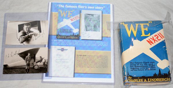CHARLES LINDBERGH AUTOGRAPHED BOOK, POSTCARDS