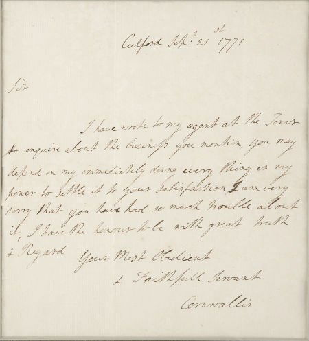 Charles, Lord Cornwallis Autograph Letter Signed