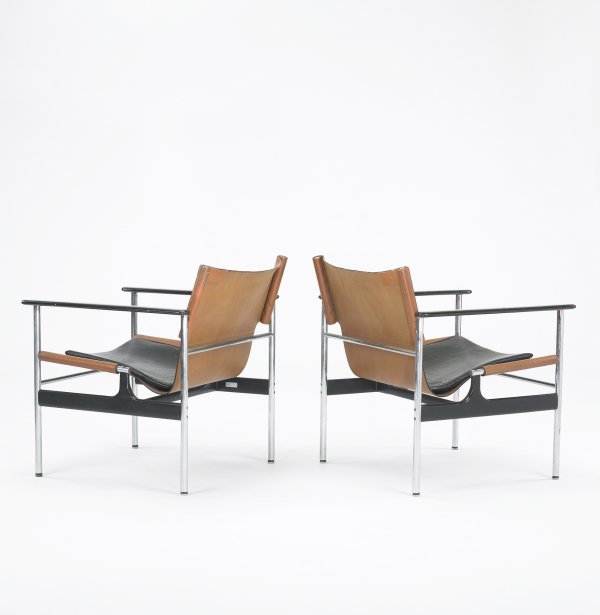 Charles Pollack sling lounge chairs, pair