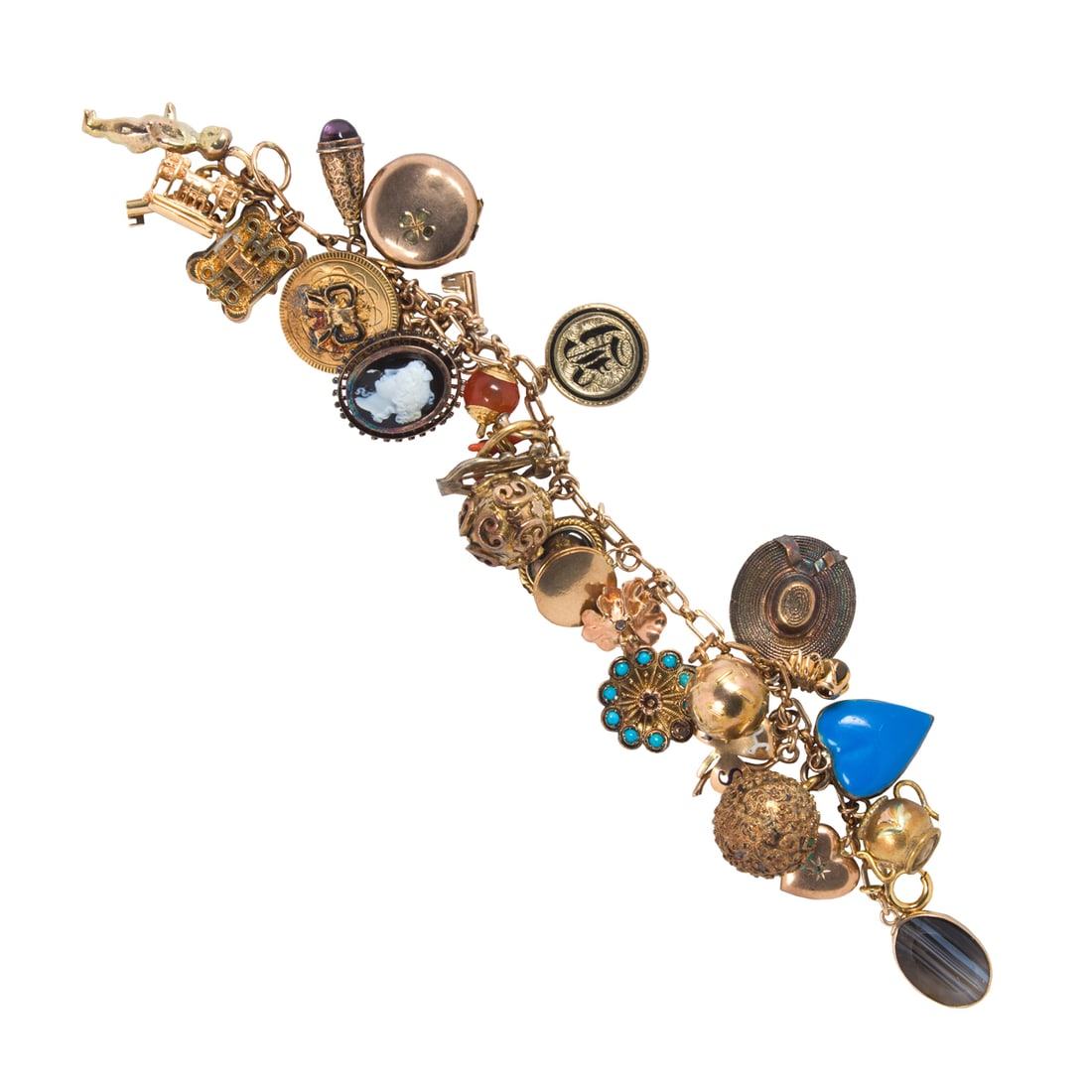 A GOLD CHARM BRACELET * cable-link chain * three chalcedony fob seal charms * one coin charm * inAdam's Auctioneers4.3(12)€5005 days Left