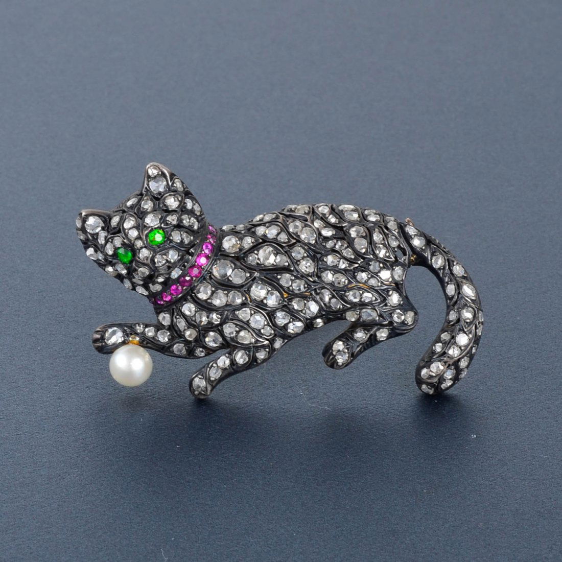 1970s 3.75ctw Ruby, 0.24ctw Diamond and 14K Cat Brooch