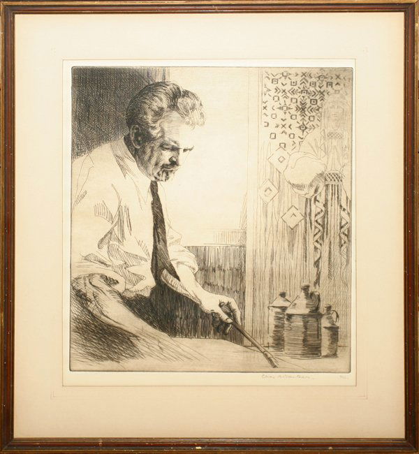 CHAS. AIKEN, ETCHING, 13" X 11", SELF PORTRAIT
