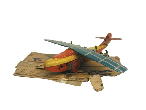 SoldMarx Tower Airplane in OBDESCRIPTION: Marx Tower Airplane tin litho wind up toy in original box. MEASUREMENTS: 8-1/2" high. CONDITION: Excellent. Works. Box with minor dents and tears.See Sold Price