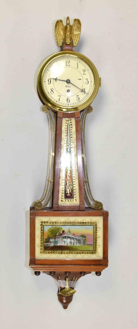 CHELSEA BANJO CLOCK. Solid gilt form eagle finial,