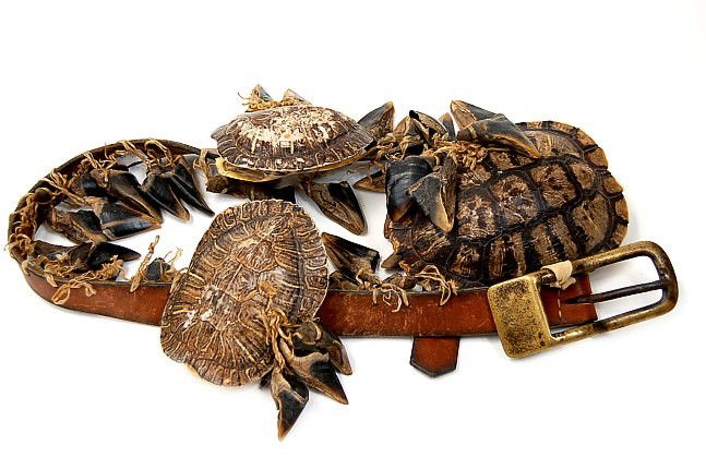 Cherokee turtle rattle and deer toe dancing belt