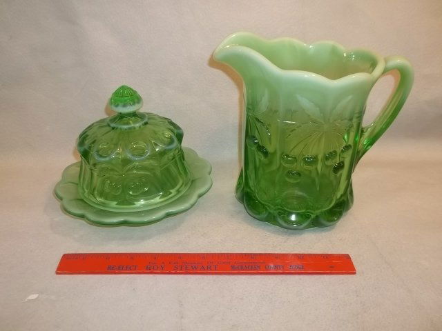 Cherry cable Green Opalescent Pitcher Butter Dish