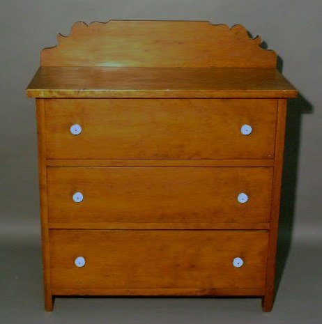 Cherry three-drawer chest, c.1870, with backsplash