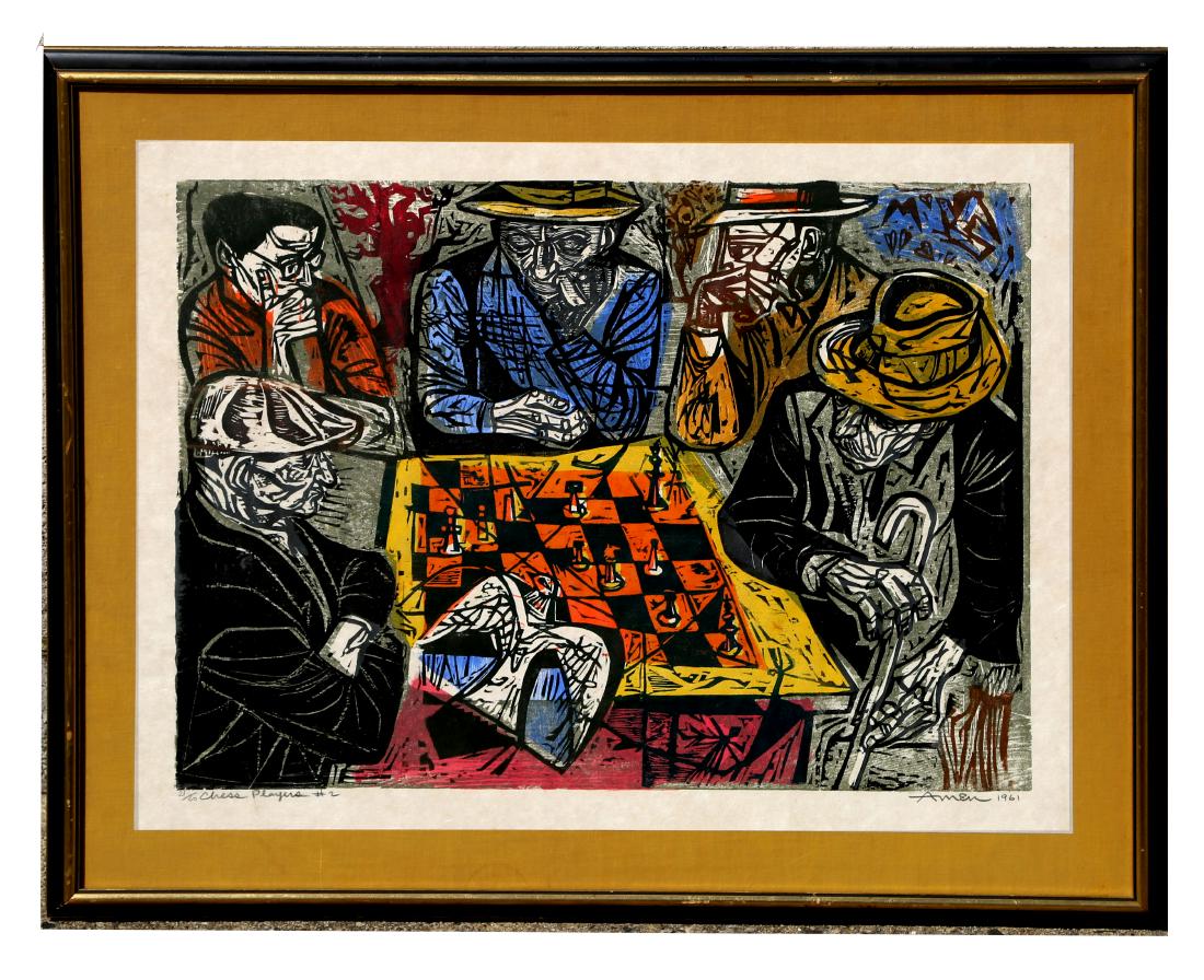 SoldAmerico Makk (Hungarian / American, 1927 - 2015)Oil on Canvas. Study of Chess players. 35" X 24" (45" X 33") (Upper West Side Estate)See Sold Price
