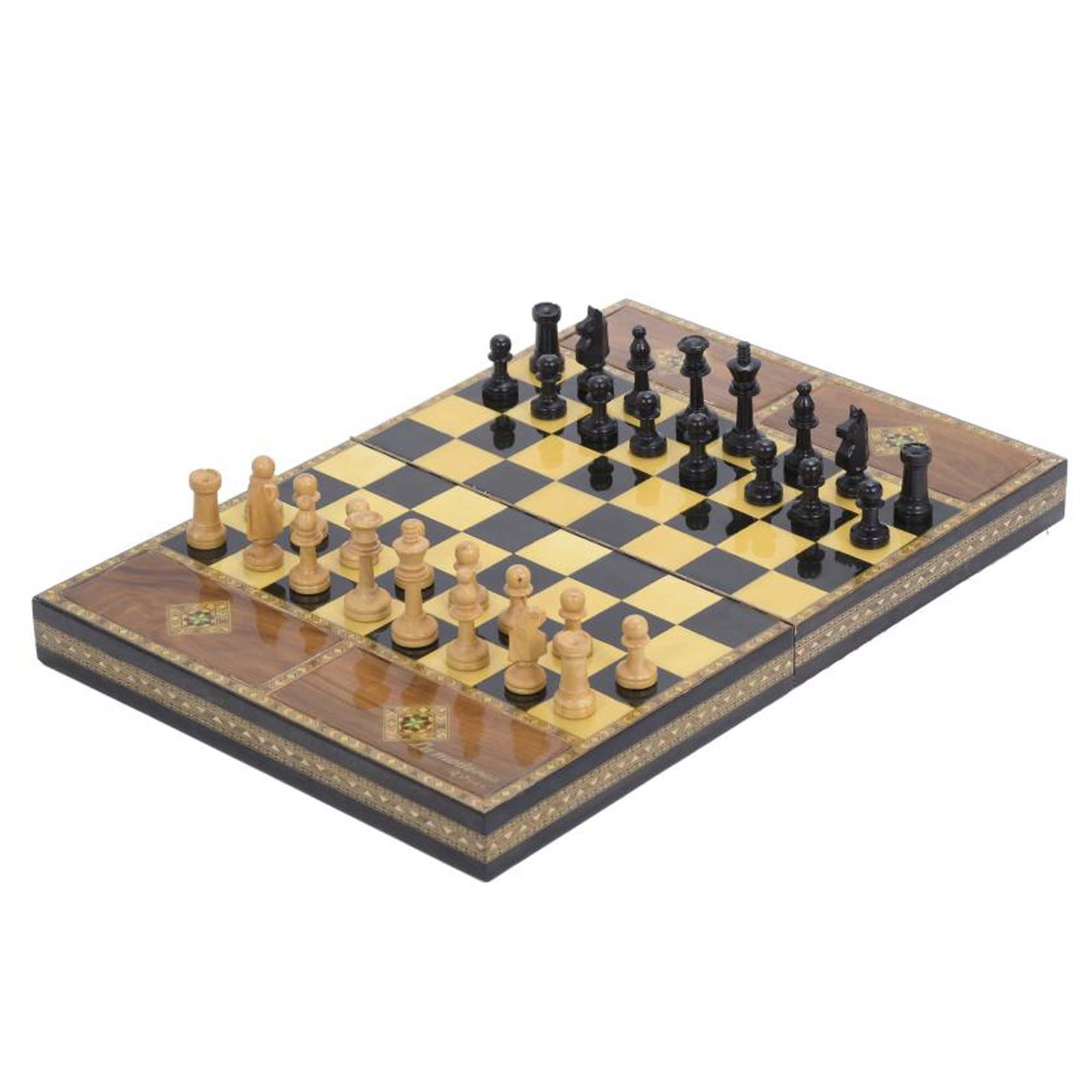 CHESS SET WITH MARQUETRY, CIRCA 1960.