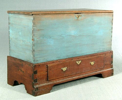 NEW ENGLAND BLUE-PAINTED PINE SIX-BOARD BLANKET CHEST. 22"h. 38"w. 14.75"d.Amelia Jeffers, Auctioneers & Appraisers4.6(180)$20014 hrs Left