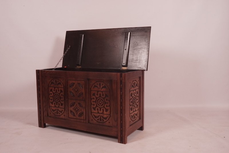 British Carved Oak Blanket Chest / Trunk