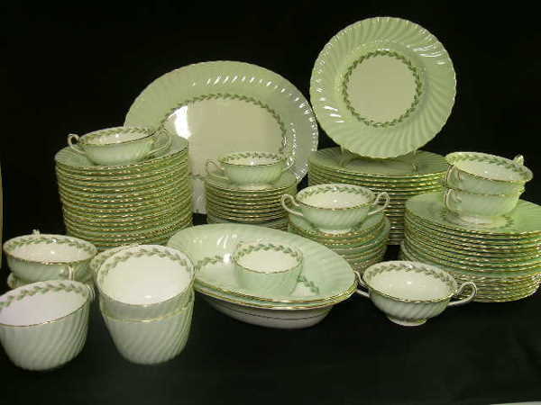 CHEVIOT MINTON GREEN WHITE DINNER WARE 97 PCS