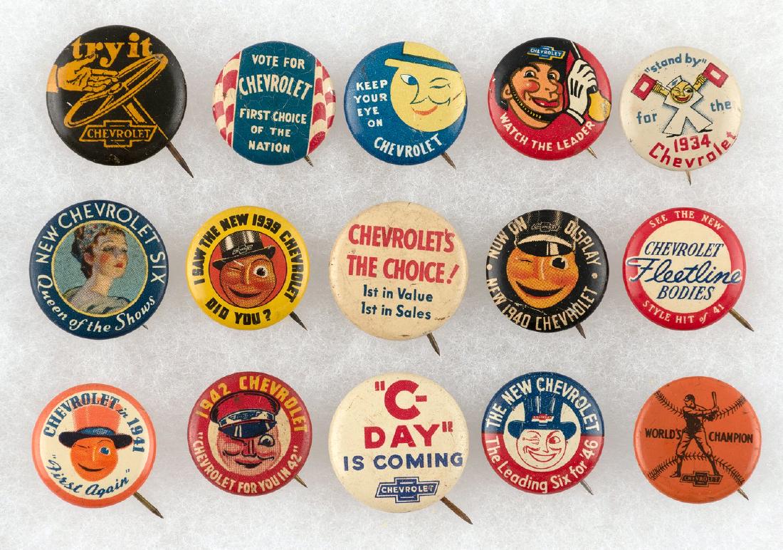 CHEVROLET 15 BUTTONS (12 DATED EXACTLY/3 ESTIMATED)