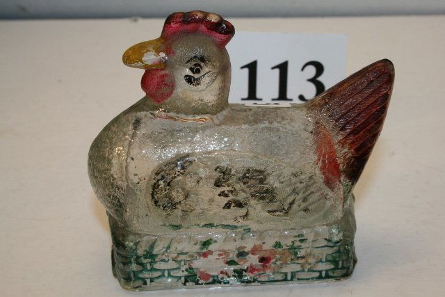 Chicken On Oblong Basket Candy Container