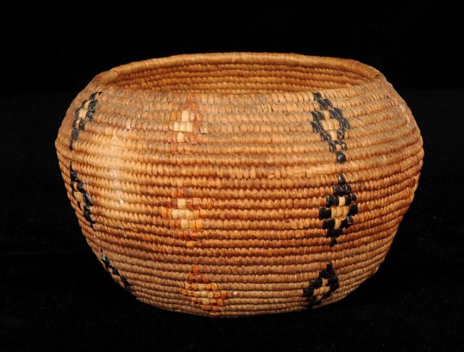 Chilcotin Coiled Basket ca. 1890 with Diamond Imbr