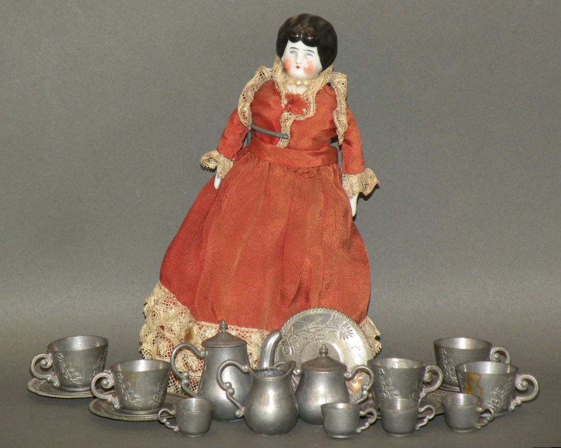 Child's tea set & doll