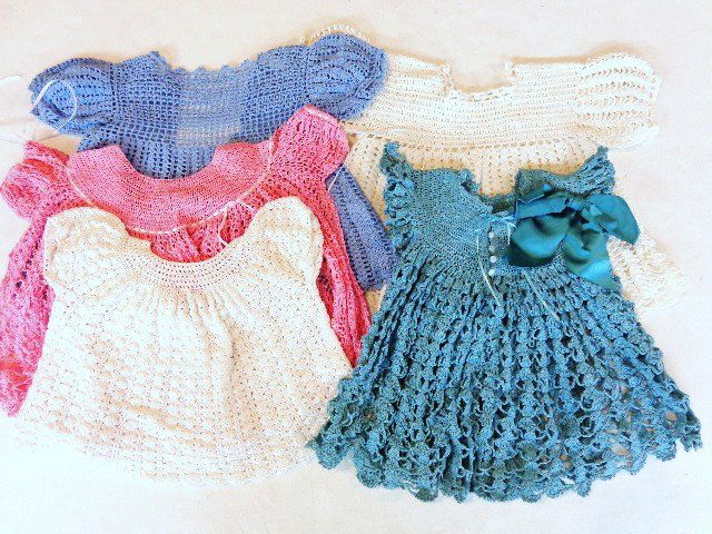 Group of Vintage Crochet Doll Dresses