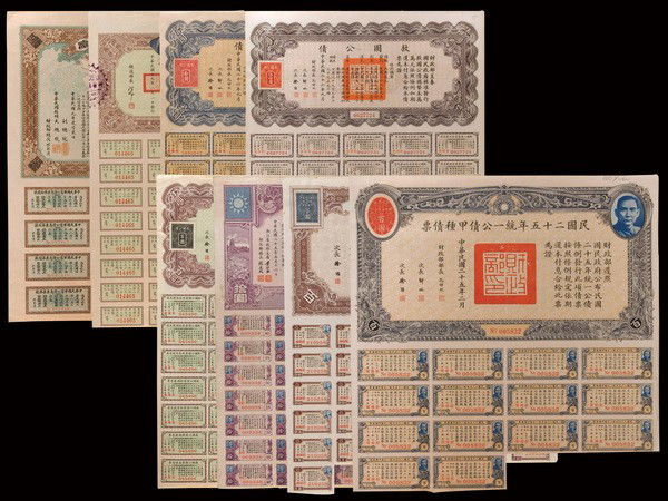VIRGINIA TREASURY CIVIL WAR $1 OBSOLETE CURRENCY / NOTES, LOT OF 124 days LeftEarly United States Paper CurrencyMar 20, 2026Chinese banknotes, China, early 20th centuryMar 13, 20261935 Japanese 25 Yen 3.5% Government Bond with Coupons No. 070451Mar 29, 2026WWII Nationalist China Ministry of Finance Liberty Bonds5 days LeftChina Central Bank 10 Yuan Banknote 1941 National CurrencyMar 29, 2026Japan 1944 7 Yen 50 Sen War Savings Bond Series 18, Industrial Bank of JapannMar 29, 20261945 Green C.N.C. Wang Chin-wei's OVP 2 blocks, Scott CN-IM 617 & 620Mar 29, 2026A Banch of China Old day Food Stamps from different Provinces & a couple Commemorative stamps2 hrs Left1949 China Plane Train Ship OVP 1500$ on 50$ block, Scott IM 934 MNHMar 29, 20261949 Gold Yuan ovpt 10$ on 30$ violet, tax stamp used as definitive, Scott IM 91Mar 29, 20261948 block New Value in Gold, OVP 50 cents on 20 dollars, Scott IM 855Mar 29, 2026Japan 1943 10 Sen Banknote, Showa 18, Series 466Mar 29, 2026Japan 1946 10 Yen National Diet Building P-87 Banknote Serial 1189922Mar 29, 2026Vintage (11 Sheets) Documents / CouponsMar 11, 2026AU50 (1941) 5 Yuan China Federal Reserve Bank of China Pick# CHNJ73a PMG6 days Left