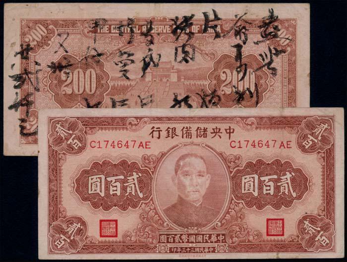 China 1944 2x200 Yuan