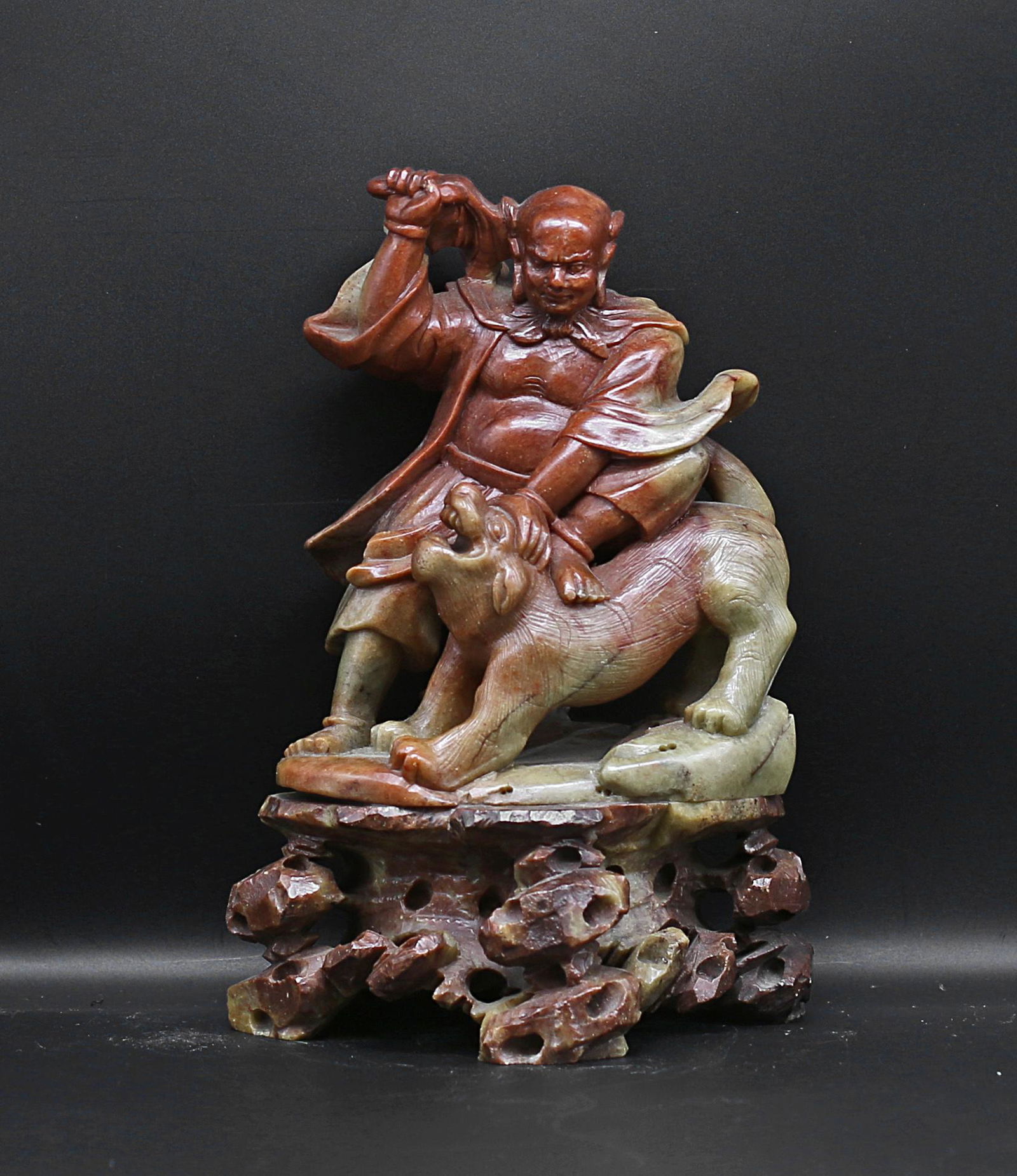 Rare hand-carved Shoushan stone Luohan figurine from an old collection