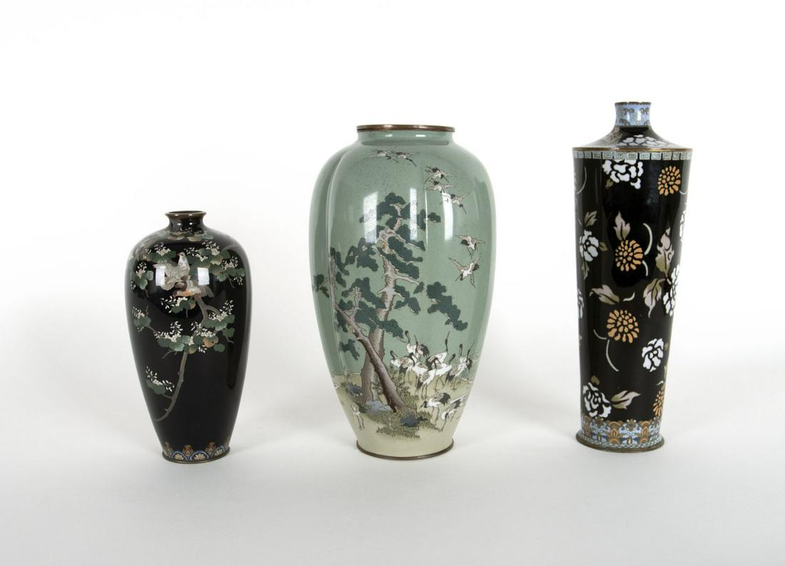 THREE LATE 19TH CENTURY JAPANESE MEIJI PERIOD CLOISONNE ENAMEL VASES. Largest 25.5 cm high. (3)Hannam's Auctioneers Ltd4.3(416)£20Mar 19, 2026