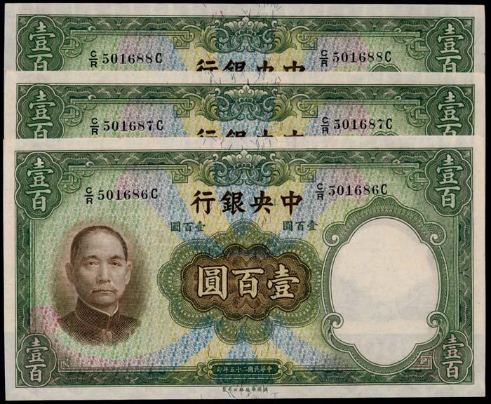 China 3x100 Yuan 1936