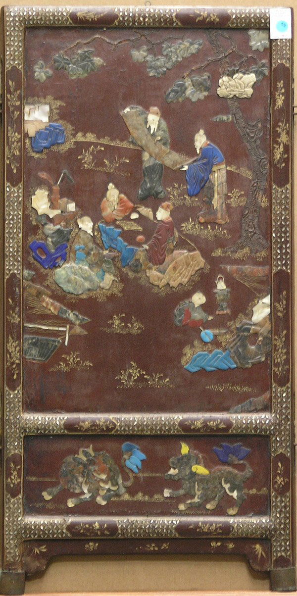ASIAN PAINTED FOLDING SCREEN, 16 IN x 41 IN6 days LeftA late Qing Dynasty wooden lacquer inlaid with gold-painted character stories hanging screenFeb 06, 2026Mid-qing dynasty, spinach green jade table screen with hundred treasures inlay & gilt landscape3 days LeftA zitanwood table screen with hundred treasures inlay "hunting scene", qianlong period, qing dynasty3 days Left4 Chinese Lacquer Panels Soapstone Inlay ParkFeb 08, 2026Collectible antique nanmu wood lacquer screen ornament Wealth and Peace2 days LeftAsian Lacquer Wall Panels with Mother of Pearl Inlay Lady Palace Design Style Relief Art Set of2 days LeftA piece of Qing Dynasty Hetian jasper inlaid with a hundred treasures "Taiping Youxiang"1 day LeftAn exquisite zitanwood lacquered and gold-embedded table screen with a pattern of immortals celebrat2 days LeftA black lacquer hanging screen with gilded imperial poem and hundred treasures inlay "antiques",3 days LeftA Exquisite Carved Red Lacquer Inlaid Cloisonne Landscape and Figure Pattern Screen3 days LeftA Qing Dynasty treasure embedded hanging screenFeb 06, 2026An exquisite zitanwood lacquered, gold-embedded and gem-set courtyard pavilion pattern table screen2 days LeftVintage Framed Chinese Painting on Silk: "Scholars Collating Classic Texts" Style, Figure Scene withFeb 12, 2026Japanese Heian Court Scene Painting after the Tosa School, with Marshall Field & Company Label,1 day LeftZitan Wood Table Screen Inlaid with Star Stone and JadeFeb 28, 2026