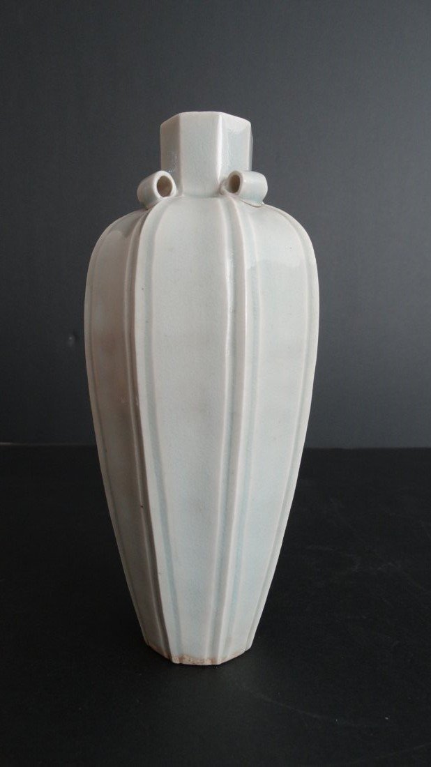 A celadon vase with carved floral design from the Qianlong period of the Qing Dynasty.FCL4.2(3)$7005 hrs Left