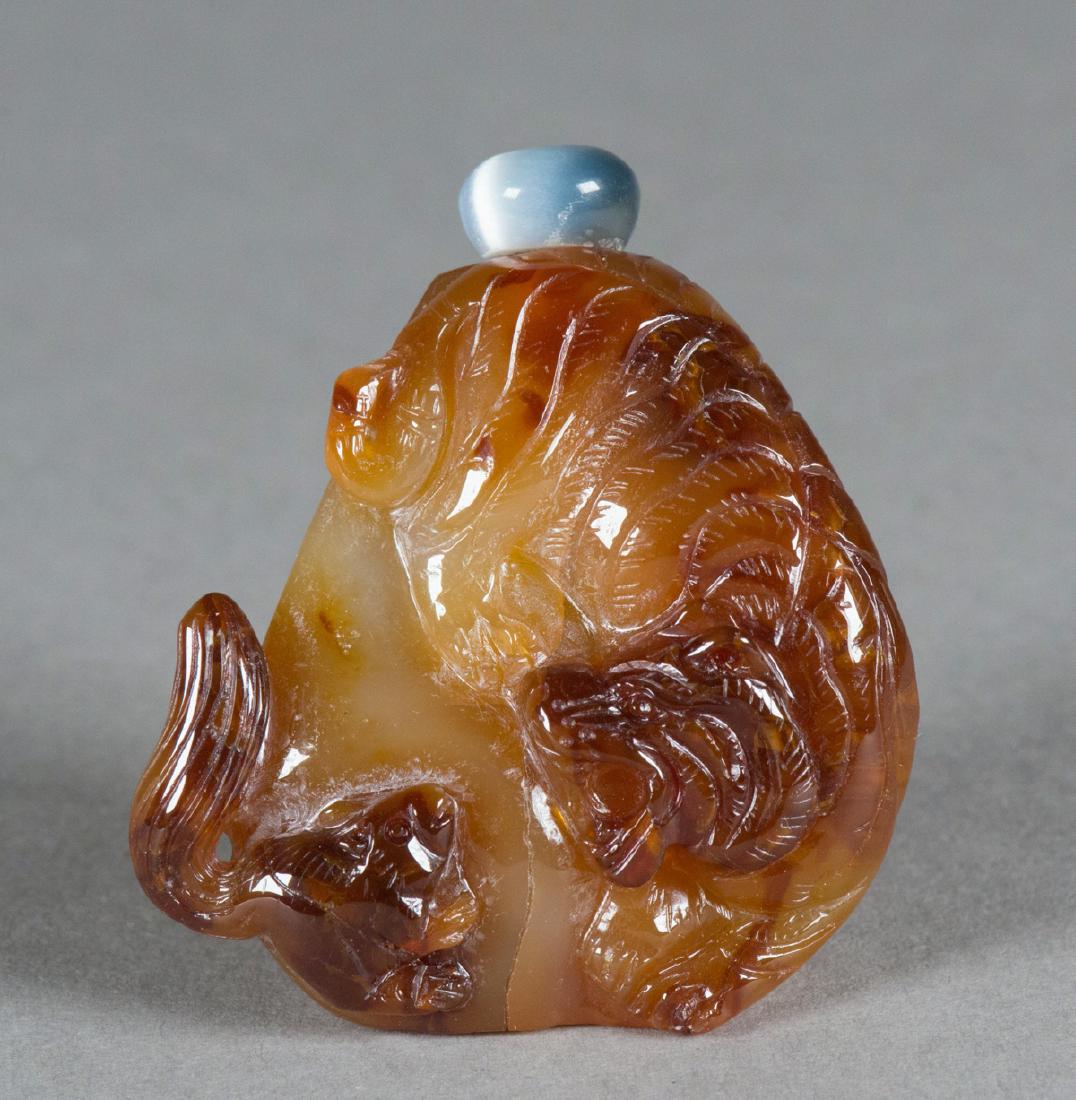 Chinese Agate Carved Tiger Snuff Bottle