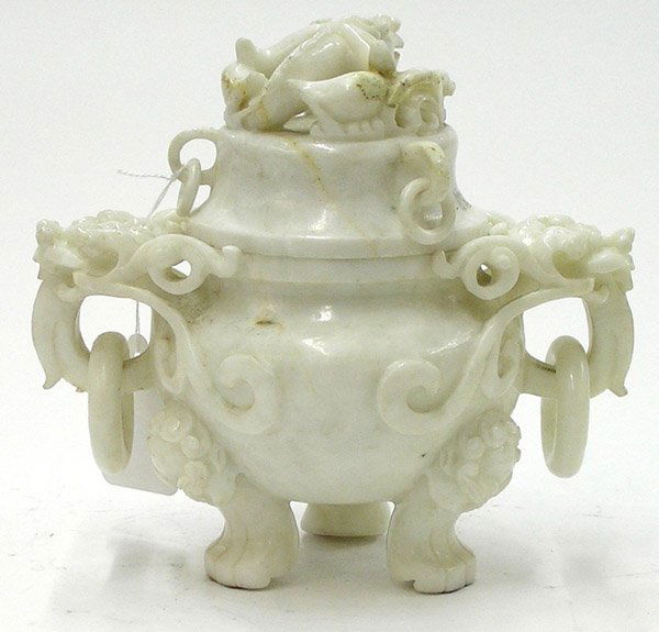 A QING DYNASTY HETIAN WHITE JADE COVERED VASE WITH SKIN, CARVED WITH TAOTIE PATTERNS AND ELEPHANT3 days LeftA QING DYNASTY HETIAN WHITE JADE WATER POT CARVED WITH TAOTIE PATTERNS AND THREE FEETMar 08, 2026A Chinese Carved Jade Hardstone Tripod Censer and CoverMar 07, 2026Chinese Carved Hardstone Urn5 days LeftA Chinese Hetian Jade Tripod Censer and Cover, 20th Century, 30FH615 Lots AwayChinese Carved Greenstone Tripod CenserMay 07, 2026Chinese Carved Serpentine Jade Vase With CoverMar 28, 2026A CARVED WHITE JADE INCENSE BURNERMar 01, 2026A Chinese White Jade Censer with Dome CoverMar 04, 2026Chinese Carved Hardstone CenserMar 14, 2026Mid-20th Century Chinese Jade Vase with Lidded Top and Pierced Scroll HandlesFeb 27, 2026Chinese Republic period porcelain famille rose covered tripod censer on fitted stand. LandscapeMar 01, 2026Qing Dynasty White Hetian Jade Tripod Censer with Dragon Motif and Beast HandlesFeb 28, 2026Chinese Green Jade Lidded Censer on Stand5 days LeftA RARE AND EXQUISITELY CARVED WHITE JADE COVERED JAR WITH LION-MASK HANDLESQING DYNASTY, QIANLONG3 days LeftA Precious White Jade 'Bird& Flower' Elephant-Handled Vase And CoverFeb 28, 2026