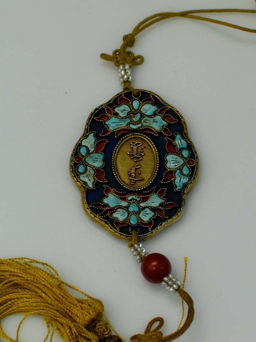 ASIAN: White Jadeite or celadon quartz amulet, Chinese, late 19th or early 20th C., rectangular formASIAN: White Jadeite or celadon quartz amulet, Chinese, late 19th or early 20th C., rectangular form with carved figures in boat to obverse, and four carved Chinese characters to reverse, pierced at t