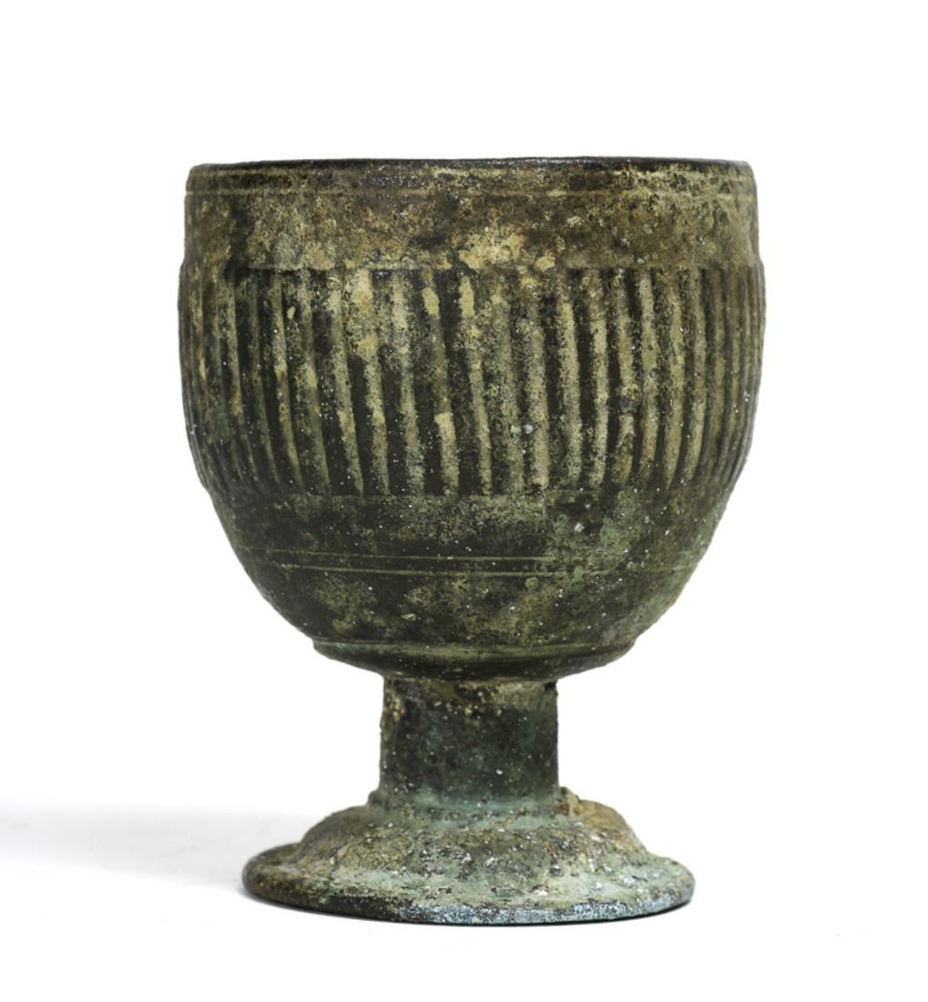 CHINESE ARCHAIC BRONZE FOOTED CUP