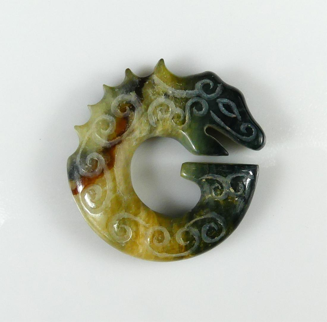 Antique Chinese Carved Jade Dragon Motif Pendant