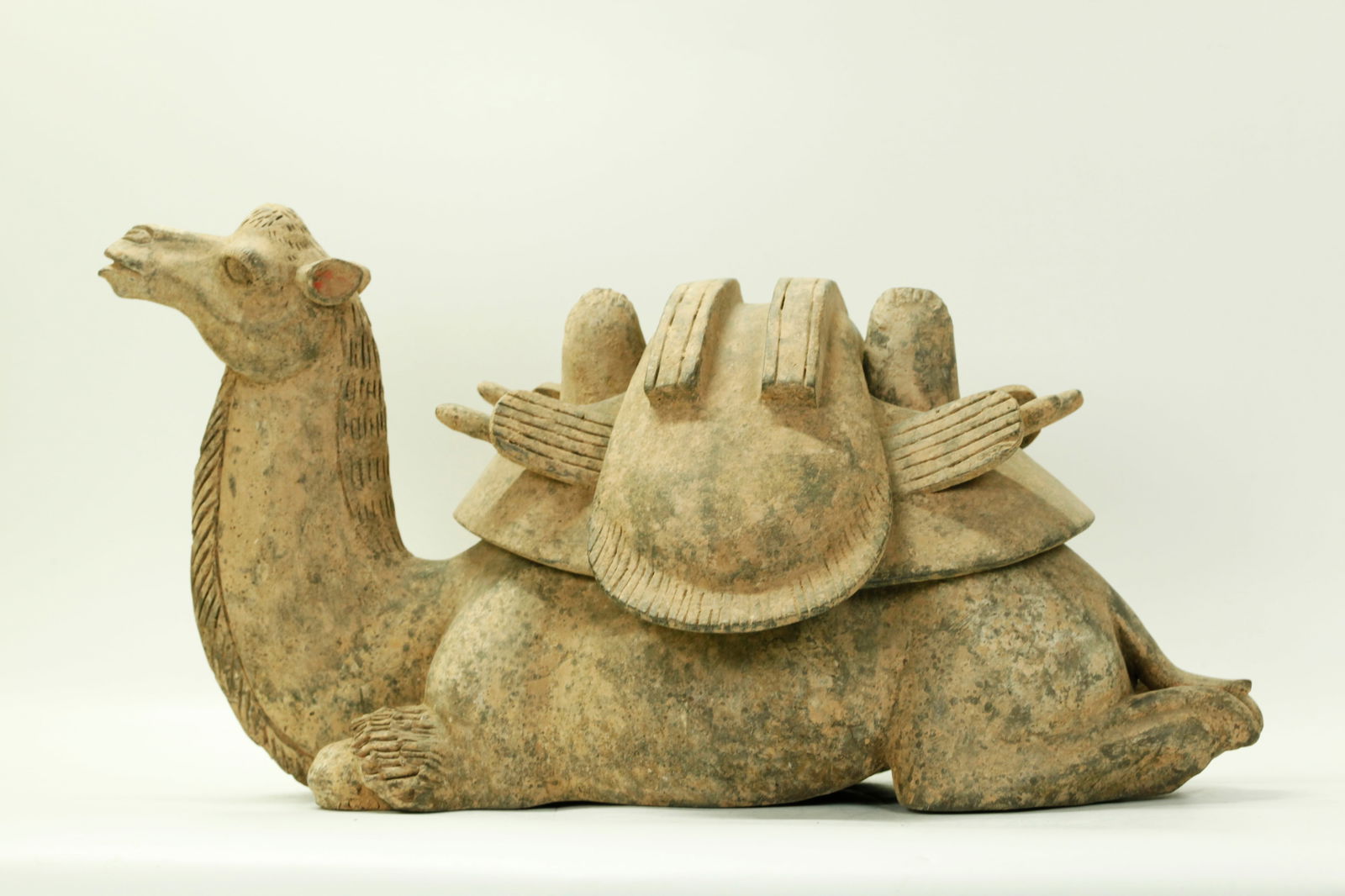 Chinese Archaistic Seated Bactrian Camel & Saddle