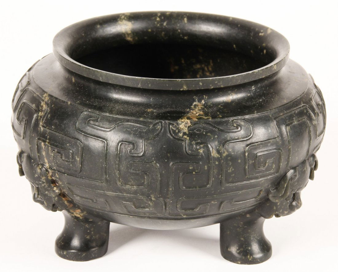 Chinese Archaistic Spinach Jade Censer