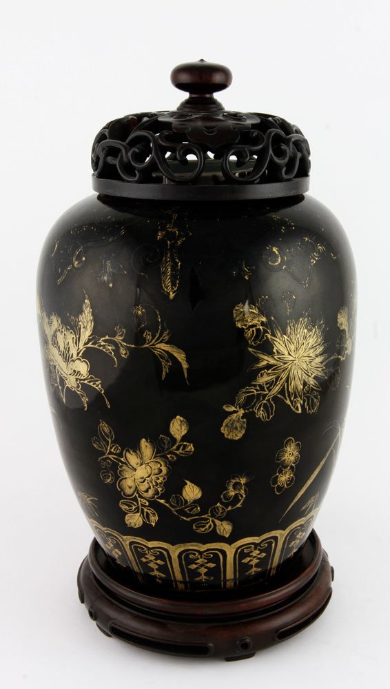 SoldChinese Black Glazed Jar with CoverChinese Black Glazed Jar with Cover 10" H X 5-5/8" W, 2.4 Lbs Shipping: We are able to pack and ship this item to an address in the United States for $35.00 via UPS Ground or USPS Priority Mail. TrackSee Sold Price