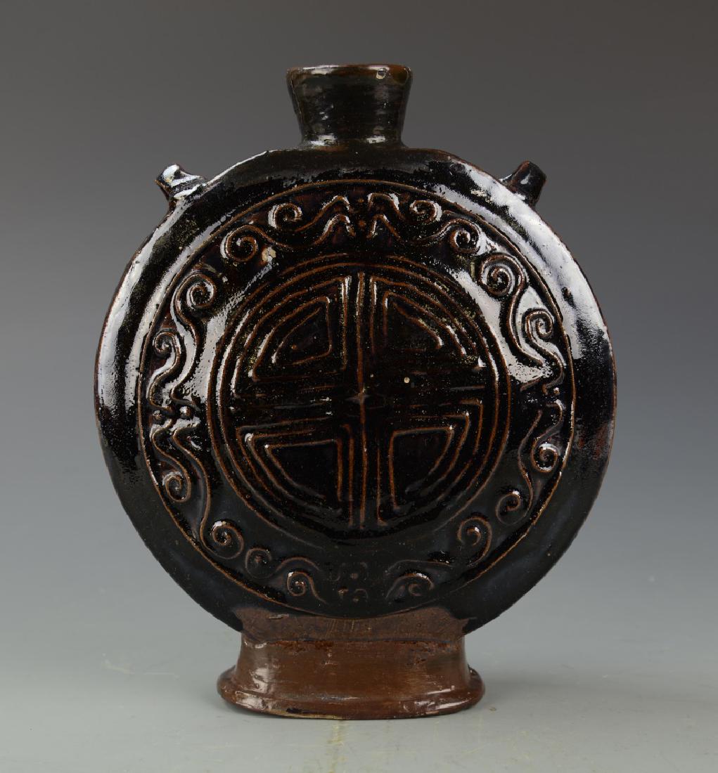 Chinese Black Glazed Moon Flask Vase