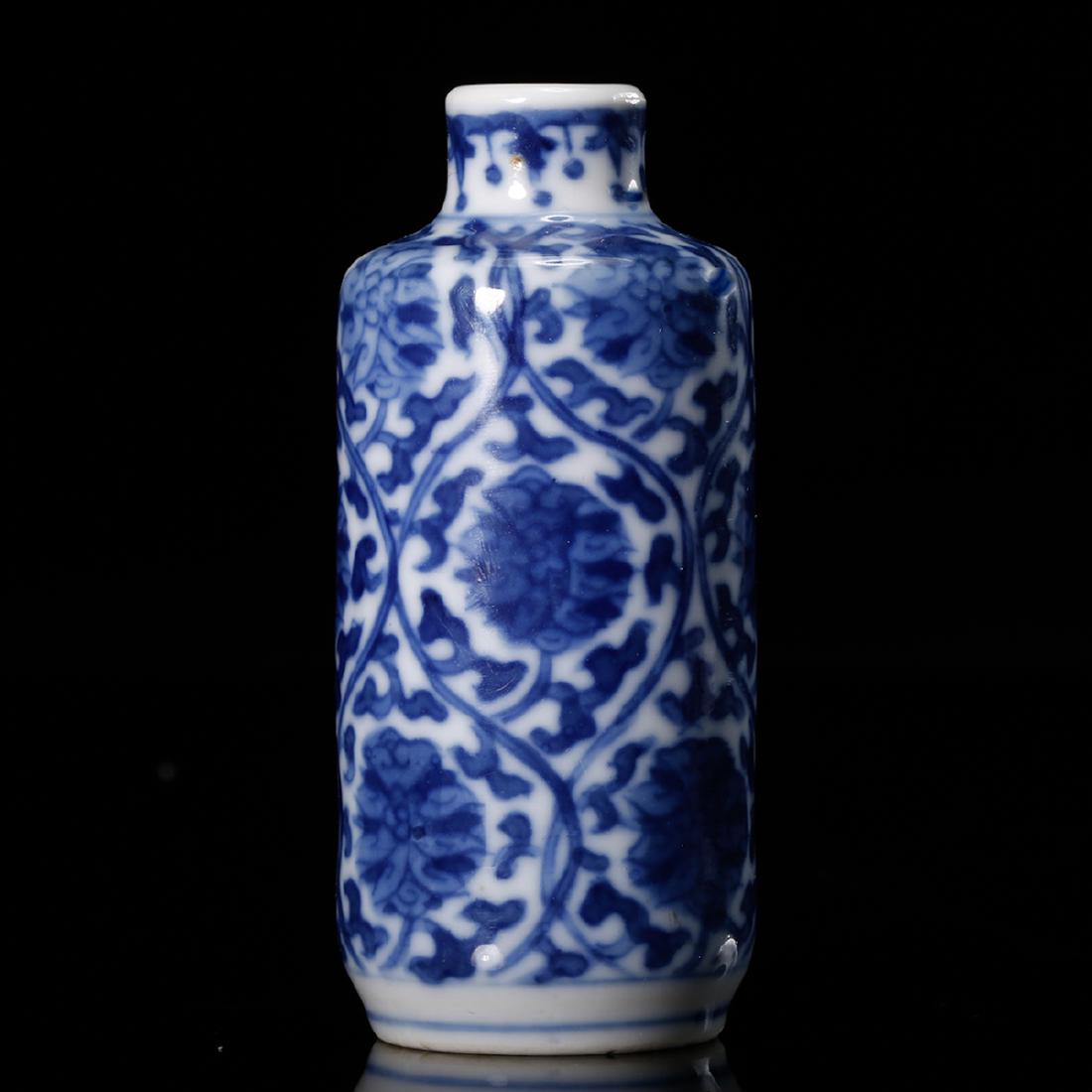 CHINESE BLUE WHITE FOLIAGE SNUFF BOTTLE