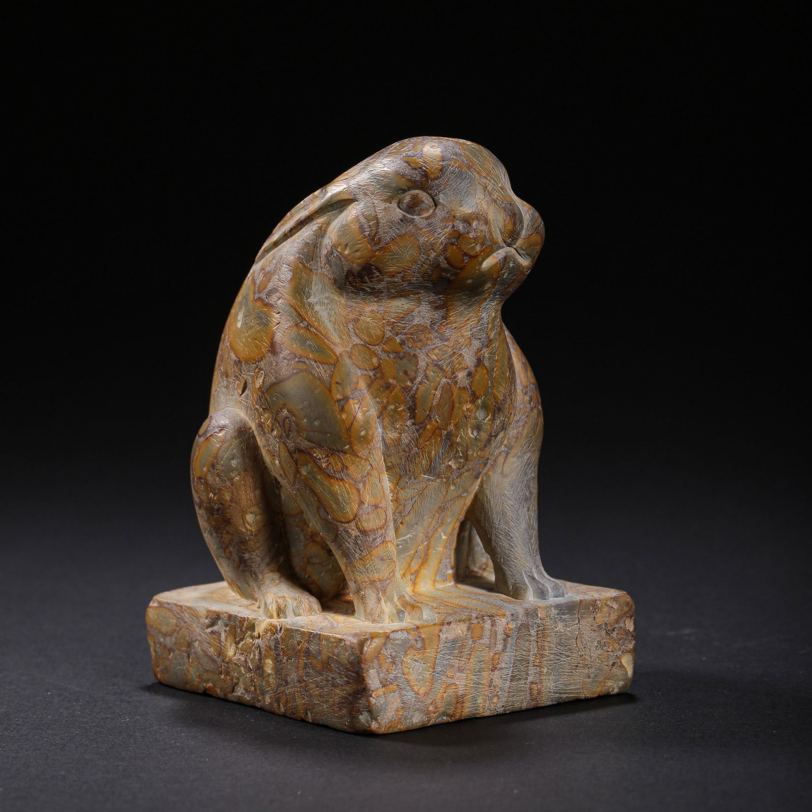 A five-flower stone carved rabbit ornament from the Qing Dynasty