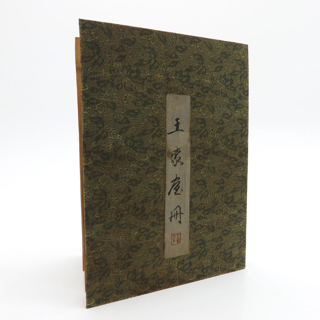 SoldRare Chinese Gilt-Decorated Jade BookQing Dynasty, comprising rectangular jade plaques of translucent celadon-white tone, all mounted in a bright yellow brocade frame, between hardwood covers which inscribed with book title and four-charSee Sold Price