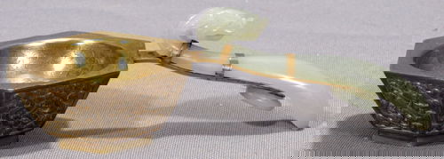 SoldChinese jade dish w/inlaid stones, Mogul designChinese jade dish w/inlaid stones, Mogul design.This item is 10 inches long, and 6 inches wide.See Sold Price