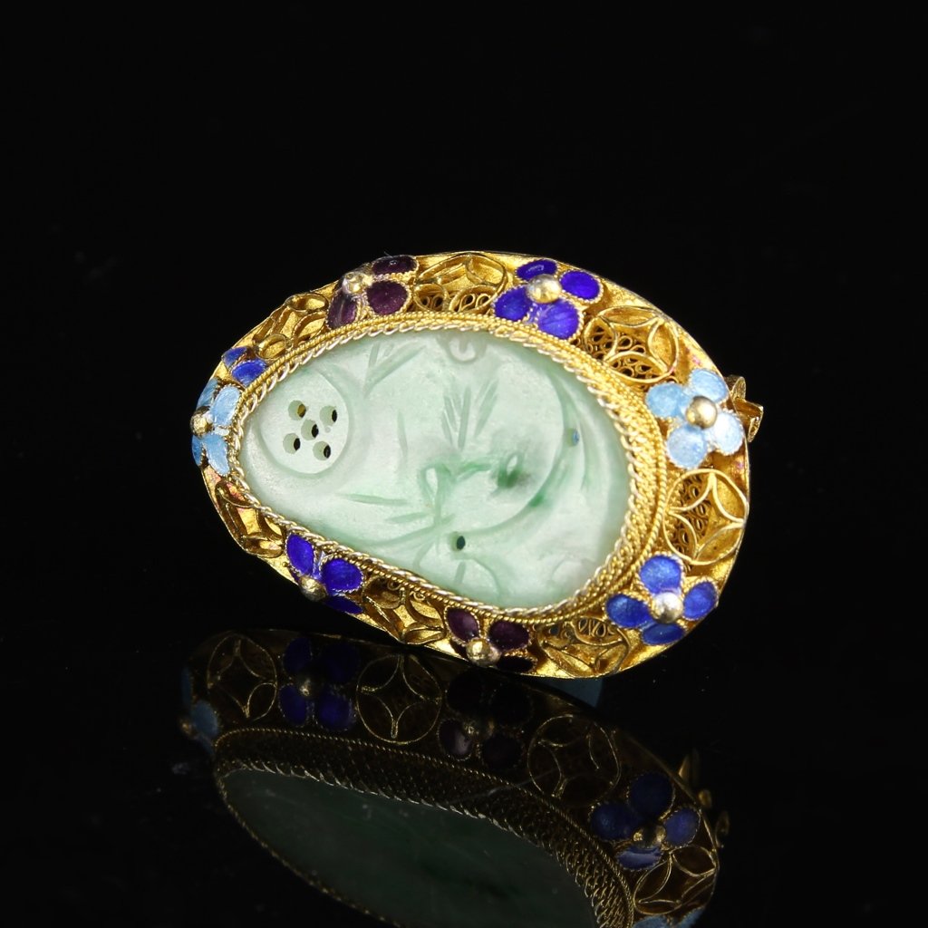 A silver-gilt jade ring from the Qing DynastyMar 22, 2026An Exquisite Gilt Silver Jadeite Flower and Bird Pattern PendantMar 11, 2026Vintage Tiffany and Co. 18K Yellow Gold Carved Chinese Jade BroochMar 09, 2026A silver gilt dotted emerald pattern brooch from the Qing DynastyMar 14, 2026A Vintage Chinese Green Jadeite Brooch Pin48 Lots AwayFine Vintage Chinese Gilt Silver Filigree Enamel & Rose Quartz Brooch1 day LeftAn Exquisite Gilt Bronze Inlaid Gems RingMar 13, 2026A silver gilt dotted emerald pattern brooch from the Qing DynastyMar 14, 2026A jadeite inlaid gold silk burnt blue bracelet of the Qing Dynasty7 mins LeftChinese Jade Jadeite, Gold on Sterling BroochMar 20, 2026Chinese 14K Yellow Gold Carved Jade RingApr 07, 2026A jadeite inlaid gold silk burnt blue bracelet of the Qing DynastyMar 22, 2026Vintage 1950's Blue Green Enamel Diamond Flower Brooch 18K Yellow Gold, 43.74 GrA Qing Dynasty burnt blue inlaid jade inlaid treasure heart-shaped box7 mins LeftA round box with a Qing Dynasty jade inlaid burnt blue floral patternMar 22, 2026Vintage 14k Yellow Gold Green Jade Open Work Brooch PendantMar 10, 2026