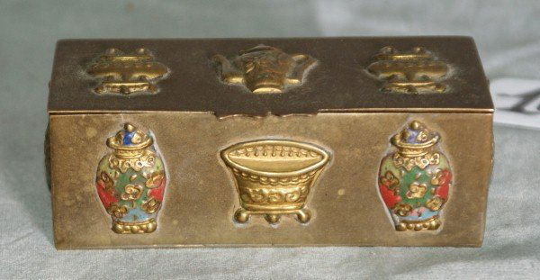 Vintage Wood Kindling Box With Brass DesignFeb 25, 2026A Brass Container23 hrs LeftBronze Box Cloisonne Container Landscape FigureFeb 22, 2026Chinese Enamel Jewelry Box3 days LeftAntique Dutch Brass Candlebox with Village Scene Design3 days LeftA copper ink box from the Qing DynastyMar 14, 2026Vintage Bronze Gilt Jewelry Container StatuetteFeb 22, 2026A beautiful copper gilt entwined lid boxMar 14, 2026A Exquisite Gilt Bronze Inlaid White Jade Lotus Pattern Character and Story Pattern BoxMar 13, 2026A Qing Dynasty copper gilt character picture story cover boxFeb 28, 2026Chinese Bronze Incense BurnerMar 10, 2026A beautiful copper-gilt treasure lid boxFeb 27, 2026Vintage Chinese Gilt Lacquer Trinket Box with Hand-Painted MedallionFeb 26, 2026A Pair of Arts and Crafts Hand Hammered Copper and Aluminum Folk Art BoxesMar 07, 2026Metal and Wooden Decorative Box with Floral Engravings, Made in IndiaA GILT BRONZE SQUARE COVERED BOX INLAID WITH ARCHAIC JADEFeb 26, 2026