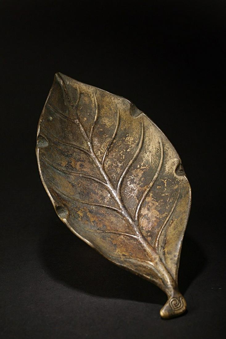 Chinese Bronze Carved Leaf Shape Brush Holder